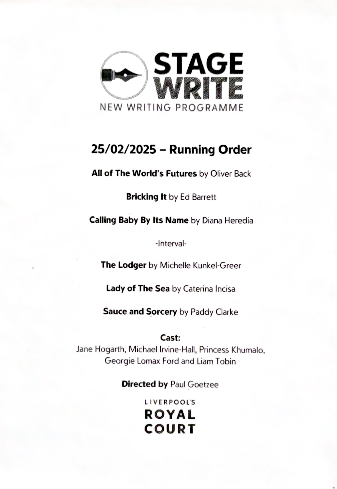 After completing the Stage Write Playwright Programme, I became a member of Royal Court Liverpool’s Stage Write group, continuing to develop my practice within a professional theatre context.